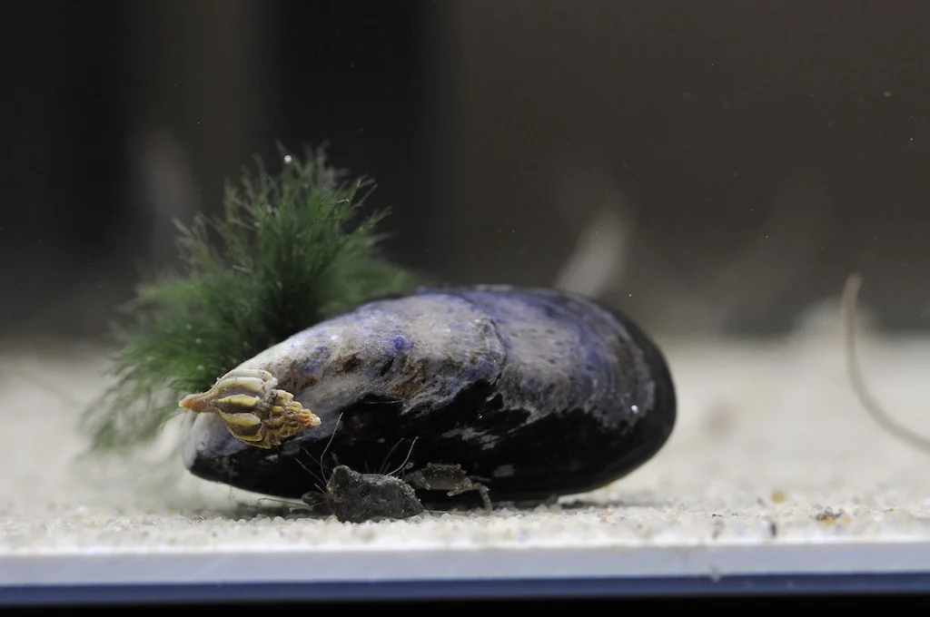 Kræklingur tolir væl at vera uppi á turrum. Tá letur hann skelina fast aftur.