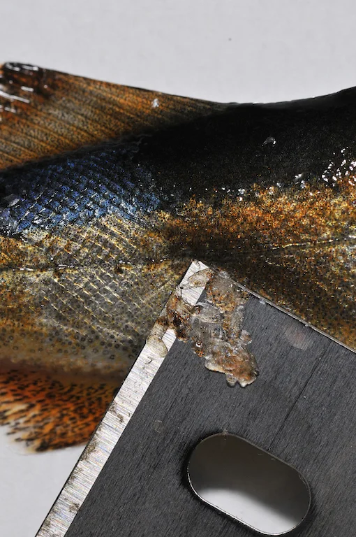 Húðin á fiski eitur skræða. Í skræðuni eru kyknur, sum gera slím. Slímið ger skræðuna hála, so fiskur glíður betur gjøgnum sjógvin. Slímið verjir eisini fiskin móti lúsum og øðrum sníkum.