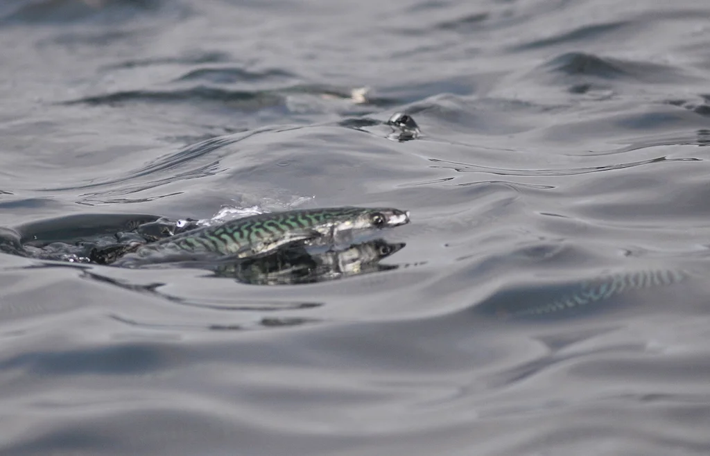 Tinnurnar í skræðuni á makreli glógva grønar og blankar, tá ið ljósið skínur á tær. Mynd: Hans Eli Sivertsen, Føroya Sjósavn.