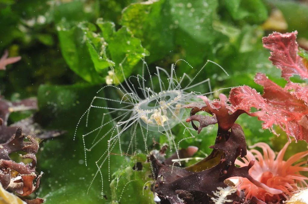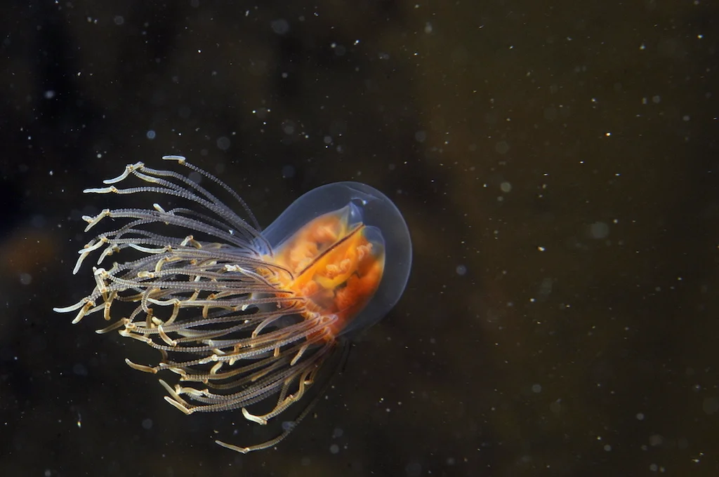 95% av kroppinum á hvalspýggju er vatn. Á trevsunum á hvalspýggju eru brenninotur við eitri í, sum hon brúkar at veiða við og at verja seg við. Hvalspýggja livir av smáfiski og smádýrum, sum hon doyvir við eitri. Mynd: Hans Eli Sivertsen, Føroya Sjósavn